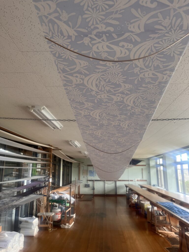 染色の現場はどうしても色が飛び散ります。