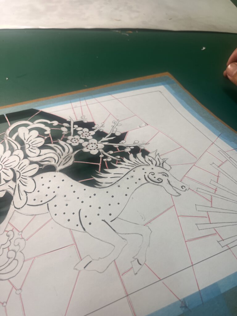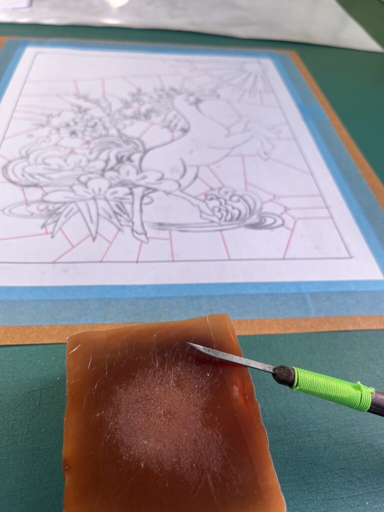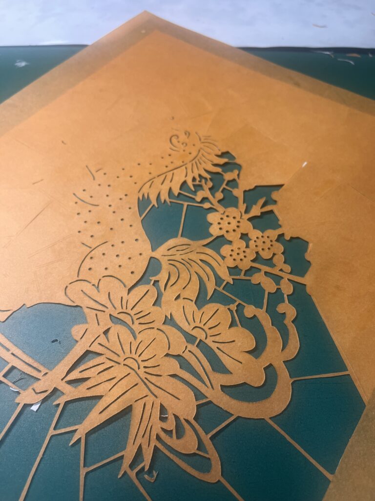 まず、デザインは私が起こし、紅型として実際に布を染め上げました。