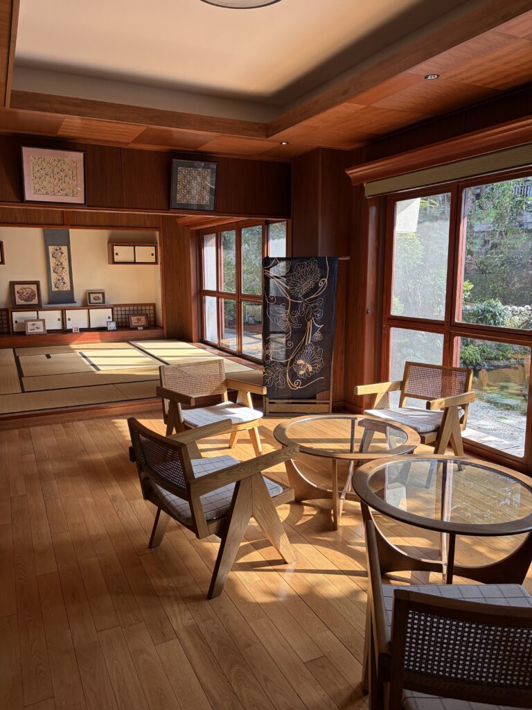 紅型工房内のギャラリー杜栄(もりふさ)にて、