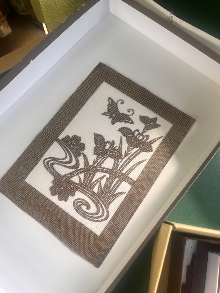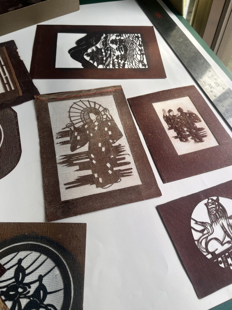 型を置き、色を考え、布や紙に向き合っていた。