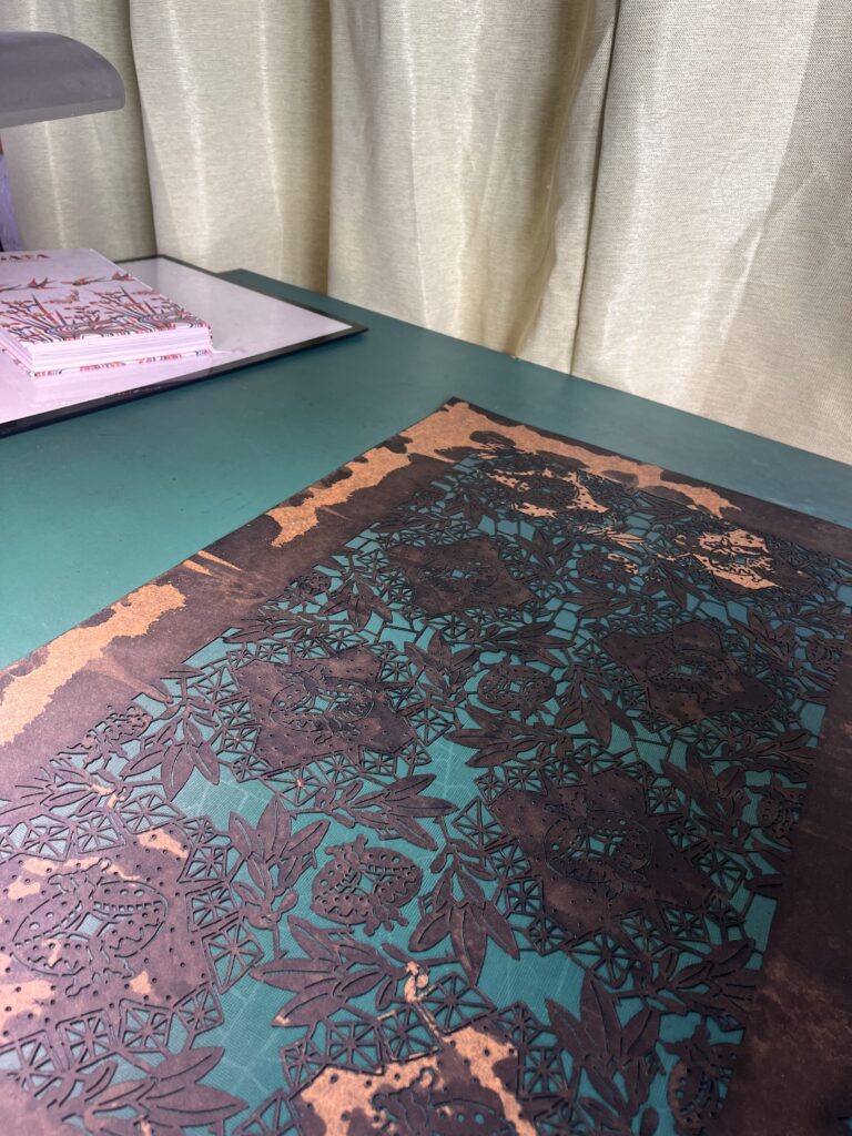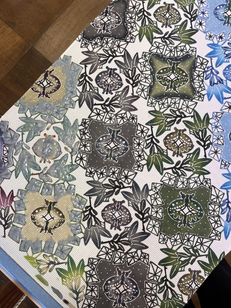 今日は、最近取り組んだ作品「光葉(ひかりは)」について少しお話ししたいと思います。作品の解説ではあるのですが、同時に私自身が「日常の中でどんなものを見て、どんなことを感じながら紅型を作っているのか」を伝える機会にできればと思っています。