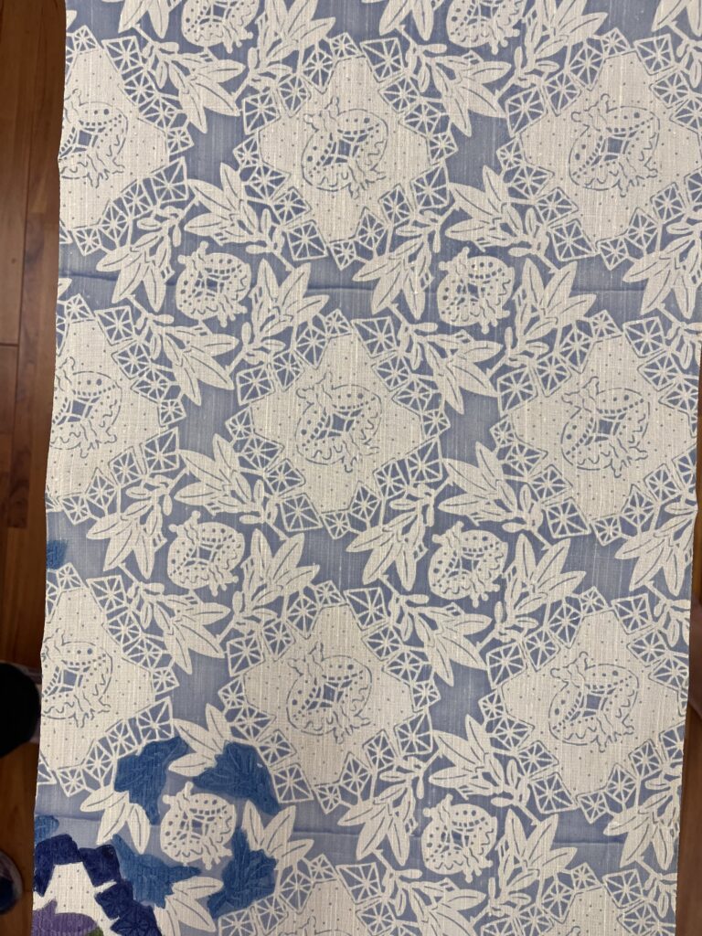 それぞれに独特の表情がありますが、私は今回、それを50%ずつ取り入れる方法を試しました。つまり「半分は白地、半分は染地」。その境界の中に、木漏れ日の揺らぎを重ねられるのではないかと考えたのです。