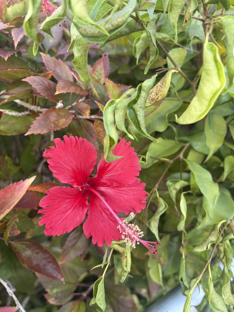 工房の周りには、桜だけでなく一年中咲いている花々があります。ハイビスカスやブーゲンビリア、名も知らぬ小さな花たち。それぞれがそれぞれの季節に、静かに色を添えています。